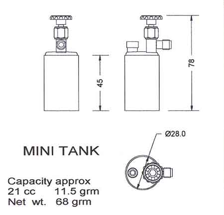 Bix Mini Refillable Gas Tank.1/4 x32 thread on outlet. See 2nd picture for dimensions and capacities.
