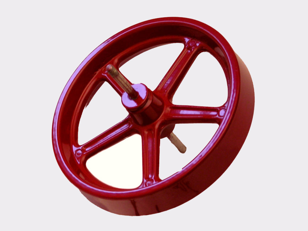 Flywheel, 100 mm diameter, red, with axle for Wilesco D 21